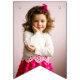 Retro Rose Queen of Hearts Anniversaire de enfant Party Photo Bunting Flags avec un design d'inspiration Alice au pays des merveilles vintage avec des cartes à jouer, des motifs de coeur rose et rouge, et une esthétique rétro charmante. Parfaits pour une fête du thé au thème de la fête de la Haine, un anniversaire au thème de Wonderland ou une célébration au coeur, ces bannières personnalisables de fantaisie vous permettent d'afficher des photos mémorables, ajoutant une touche magique et personnelle à votre décor de fête.