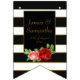 Bannière À Fanions Rose rouge, noir, blanc et rayure dorée -