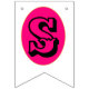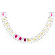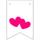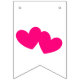 Fanions "JUST MARRIED" en or, initiales et cœurs magenta sur fond blanc. Une bannière ou un fanion polyvalent pour la plupart des mariages. Le premier fanion comporte un double cœur magenta, les fanions suivants portent l'inscription "JUST MARRIED" avec les initiales du couple. Le dernier fanion comporte à nouveau un double cœur magenta. Personnalisez ces fanions avec vos lettres pour votre grand jour. Une jolie décoration derrière le couple lors du dîner de réception.