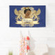 La bannière bienvenue élégante africaine de Prince|Royal Blue| comporte le prince couronné d'afro-américain sur la crête d'un lion majestueux d'or avec l'arrière - plan riche de bleu royal. Texte de bannière de personnaliser si désiré. Perfectionnez pour le prince royal baby shower, petite fête d'anniversaire de prince ou baptême orienté royal.