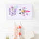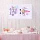 Une bannière d'anniversaire personnalisée conçue avec une mignonne licorne rose. Orné d'une tête fleurie de fantaisie. Des papillons Whimsical volent autour de nous.