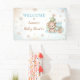 Banderole mignonne pour baby shower de Noël garçon avec un adorable ours bébé, arbre de Noël et cadeaux en bleu, beige et vert avec fausse parties scintillant flocons de neige doré et étoiles. Personnalisez facilement tout le texte. - Kate Eden Art