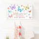 Bienvenue dans le style avec cette bannière colorée baby shower papillon. Doté de papillons aquarelle dans une palette arc-en-ciel et d'un script ludique, cette bannière personnalisée ajoute du charme à votre entrée de fête ou à votre décor. Idéal pour les fêtes du printemps et du jardin !