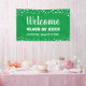 Banderole de bienvenue pour la réunion de classe avec la frontière des étoiles confetti. Modifiez l'année de classe et le nom de l'école, et changez l'arrière - plan vert en couleur de votre école si vous le souhaitez.