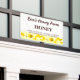 Un panneau de miel personnalisé pour les petites entreprises avec un grand texte sur le dessus pour votre nom d'entreprise et votre produit, et un petit texte sur le bas pour votre adresse ou d'autres informations, et l'art vintage des abeilles sur un nid d'abeille. Customisez-le pour modifier les polices, les couleurs arrière - plans, télécharger votre logo, même enregistrer votre design pour plus tard.