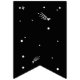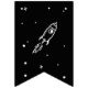Unique, amusant, moderne et audacieux anniversaire astronaute d'aventure spatiale fête d'anniversaire bunting bannière design. La palette de couleurs noir et blanc est utilisée pour créer un thème simple mais audacieux et accrocheur de l'espace de célébration d'anniversaire thème design. La couleur dominante noire est utilisée pour représenter l'espace extérieur profond. Des dessins animés amusants illustrant des fusées spatiales, des étoiles spatiales, des météores, des étoiles tournantes, des astronautes et des planètes spatiales sont incorporés dans cette audace amusante de cette conception d'anniversaire d'aventure spatiale mondiale. Customisé avec votre propre nom ou message.