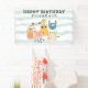 Des petits monstres colorés et drôles sur cette grande bannière pour souhaiter à votre petit monstre un joyeux anniversaire ! Des monstres joyeux rose, vert, bleu et or aux visages drôles et amicaux.