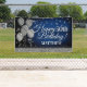 Banderole amusante pour l'intérieur ou l'extérieur, avec quelques ballons métalliques glam et confettis glittery sur un riche arrière - plan bleu royal texturé pour votre bannière d'anniversaire personnalisée.