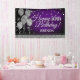 Banderole amusante pour l'intérieur ou l'extérieur, avec quelques ballons métalliques glam et confetti de gloire sur un riche texturé arrière - plan violet profond pour votre bannière d'anniversaire personnalisée.