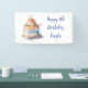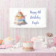 Joli gâteau d'anniversaire fantaisiste bannière personnalisée pour une fête d'anniversaire. Ajoutez le nom et l'âge de l'enfant dans la zone personnalisée.