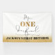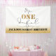 Cette bannière M. Onederful mignonne est personnalisable avec vos informations et est disponible en différentes tailles.