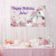 bannière d'anniversaire de licorne pour filles, enseigne de fête de cheval joli, bannière d'anniversaire pastel personnalisée, idées d'anniversaire de fille de cheval, toile de fond de fête de licorne mignonne, bannière de cheval personnalisée pour enfants, décoration de fête rose et violet, thème de fête équestre féminin, fournitures de fête de licorne pour filles, décoration d'anniversaire de cheval magique