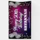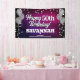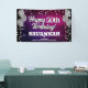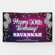 Banderole amusante pour l'intérieur ou l'extérieur, avec des ballons métalliques argentés festifs des deux côtés du design avec des confettis métalliques brillants et argentés sur un riche arrière - plan texturé rose chaud et violet pour votre bannière d'anniversaire personnalisée. Ce produit sert aussi de merveilleux gardiens d'anniversaire.