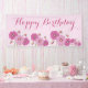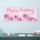 Bonne bannière d'anniversaire avec des fleurs roses. Avec l'aimable autorisation de ekochin/Designé par Janet Palaggi