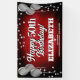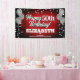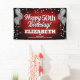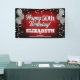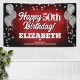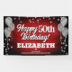 Banderole amusante pour l'intérieur ou l'extérieur, avec des ballons métalliques argentés festifs des deux côtés du design avec des confettis métalliques brillants et argentés sur un riche arrière - plan rouge rubis texturé pour votre bannière d'anniversaire personnalisée. Ce produit sert aussi de merveilleux gardiens d'anniversaire.