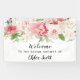De magnifiques pivoines créent une étonnante bannière de bienvenue de douche nuptiale. Un bel agencement de pivoines roses rousses avec des vignes assorties et des feuilles en font un design floral très moderne. Il a un peu l'air de Boho Chic, à cause des vignes pendantes et des feuilles. Cette bannière de douche nuptiale fait partie de la collection Rustic Pink Peony. Il contient des modèles de coordination qui vous permettent de créer facilement une douche nuptiale unique et personnalisée.