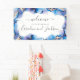 Cette élégante bannière d'accueil de mariage dispose d'un cadre d'aquarelle magnifique et de jolies calligraphies. La texture de l'aquarelle qui entoure le texte comprend des nuances de bleu marine riche, cerulean, améthyste pourpre et or. Le panneau modifiable dit "Bienvenue au mariage de" en calligraphie et en lettres serif. Vos noms sont écrits en calligraphie sous le message d'accueil. Notre collection de mariages Mystical Modern Ink Wash vous propose des panneaux de mariage coordonnés et des décorations.