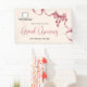Cette bannière de bienvenue pour l'ouverture de l'entreprise présente un ruban rouge à l'aquarelle moderne sur un fond de couleur crème claire. Le design offre un espace pour votre logo.