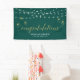 Cette bannière événementielle présente des lumières à cordes géométriques or stylisées et une typographie "Félicitations" sur un arrière - plan vert émeraude. Cette bannière de félicitations est la décoration parfaite pour les événements modernes. Vous pouvez customiser le nom et le texte en bas de la bannière pour vos événements. (Anniversaire, Retraite, Anniversaire, Graduations ou autres célébrations)