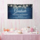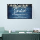Un élégant design rustique avec des lampes à cordes sur un arrière - plan de panneaux de bois bleu. Conçu par Thisisnotme©