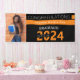 Banderole photo avec photo, nom du diplômé et année de classe. La bannière est décorée dans les tons orange et noir. Ajoutez simplement votre photo et vos informations, ajoutez cette bannière à votre panier et célébrez cette grande réalisation. Graduate Black Orange Photo Graduation Bannière Conception de jour férié | ©Melissa Patton - Designer