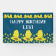Le design de fête d'anniversaire de casquette de 10 gallons en turquoise et or présente l'oeuvre dessinée à la main de WindyDesign et dit Joyeux anniversaire sur une bannière de casquette cowboy.