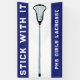 Bannière d'équipe de crosse créative avec ligne de motivation et bâton de crosse sur un arrière - plan bleu. Modifier la personnaliser de texte.