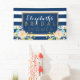 Bannière de mariage fleurie rayée marine