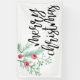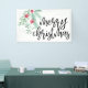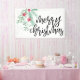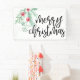 Bannière de vacances qui dit "Joyeux Noël" dans un style brush-script élégant et présente des baies d'aquarelle peintes à la main et le feuillage hivernal.