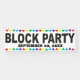 Bloquer la bannière de rue avec une ligne de texte personnalisée - modifier pour ajouter la date ou d'autres informations pour votre partie. Bordure colorée de fenouil en haut et en bas. N'oubliez pas de commander le style de bannière extérieure si vous voulez accrocher cette bannière à l'extérieur.