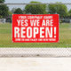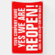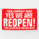 Aidez à encourager les clients à revenir dans votre entreprise avec cette bannière d'enseigne pour les commerces de détail, l'hôtellerie et la beauté pour informer les clients de votre réouverture. Bannière simple, audacieuse et rouge vif avec texte blanc. La couleur de fond peut être modifiée pour s'adapter aux couleurs de votre entreprise. Idéal pour générer du trafic piétonnier vers votre entreprise et alerter les clients que vous êtes ouvert. Personnalisez avec le nom de votre entreprise et les détails de votre message. Conçu par www.mylittleeden.com