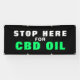 Obtenez plus de clients dans la porte et plus de ventes avec cette Bannière de signalisation externe CBD Oil Business. Il s'agit d'un design moderne, audacieux et simple, avec un arrière - plan noir et de grandes lettres blanches et vertes. Le texte est "arrêtez ici pour l'huile CBD." Bannière extérieure montrée en photo. Aussi disponible pour l'intérieur et dans différentes tailles.