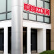 Red maintenant embaucher l'aide recherchée signer bannière avec bordure blanche