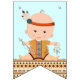 Banderole de baby shower tribal avec adorable bébé portant une tenue amérindienne mignonne avec flèche et attrapeur de rêve sur un arrière - plan de design indien Aztec avec des lettres de parties scintillant d'or épelées "it's a Boy". Vous pouvez changer la couleur arrière - plan derrière les bébés. c'est un design imprimé sans réelle parties scintillant.