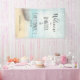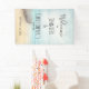 Banderole mariage avec une belle image rustique. Couleurs subtiles de bleu clair, marron sablonneux et blanc doux. Une scène de plage avec un bateau sur le rivage avec un filet de pêche accroché à côté. Un élégant look défraîchi.