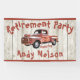 Ajoutez cette bannière de fête de retraite rustique amusante à votre événement à venir. Peut être utilisé en intérieur ou en extérieur. Conçu avec un vieux camion rouillé rouge-orange sur un arrière - plan rustique d'aspect bois. Pour personnaliser, il suffit d'insérer le nom du retraité dans notre modèle.