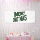 Cette bannière met en valeur les mots "Joyeux Noël" dans une police gras ainsi que des lettres vertes avec un contour rouge de différentes tailles en arrière-plan dans ce thème et style de Noël. Cette bannière a une impression simple face avec des mesures de sécurité pour l'extérieur de 4"x10" fabriquée avec une finition mate élégante et est à la fois résistante aux décolorations et aux déchirures pour une utilisation à l'intérieur ou à l'extérieur, idéale pour annoncer n'importe quoi, des anniversaires à la remise des diplômes, des mariages aux anniversaires de mariage. Ourlets et bords soudés thermiquement pour une finition soignée. Les bannières extérieures peuvent être achetées avec des œillets métalliques.