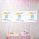 Cette bannière comporte les mots "Baby Shower" dans une police d'impression unique avec des lettres de différentes couleurs avec un nuage et des gouttes de pluie dans ce thème d'étoiles et d'animaux. Cette bannière a une impression sur un seul côté, des mesures de sécurité extérieures de 4"x12", est fabriquée avec une finition mate élégante et est à la fois résistante à la décoloration et aux déchirures pour une utilisation à l'intérieur ou à l'extérieur, idéale pour annoncer n'importe quoi, des anniversaires à la remise des diplômes, des mariages aux anniversaires de mariage. Bords ourlés et soudés thermiquement pour une finition soignée. Les bannières extérieures peuvent être achetées avec des œillets métalliques.