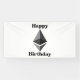 Cette bannière comporte les mots "Joyeux Anniversaire" dans une police en gras avec des lettres noires et un contour gris affichant une icône Ethereum au centre dans ce thème et style d'anniversaire de la crypto-monnaie. Cette bannière a une impression simple face avant, des mesures de sécurité extérieures 4"x8" réalisées avec une finition mate élégante et est à la fois résistante aux décolorations et aux déchirures pour une utilisation en intérieur ou en extérieur, idéale pour annoncer n'importe quoi, des anniversaires aux remises de diplômes, des mariages aux anniversaires de mariage. Bords ourlés et soudés thermiquement pour une finition soignée. Les bannières extérieures peuvent être achetées avec des œillets métalliques.