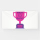 Cette bannière présente les mots "World's Greatest Mother" affichant une police gras d'annuaire avec des lettres violettes ainsi qu'une couronne de laurier avec le numéro 1 au centre sur un trophée de style plat couleur rose sur une base violette dans ce thème de la fête des mères. Cette bannière a une impression simple face, des mesures de sécurité extérieures de 4"x8" réalisées avec une finition mate élégante et est à la fois résistante aux décolorations et aux déchirures pour une utilisation à l'intérieur ou à l'extérieur, idéale pour annoncer n'importe quoi, des anniversaires à la remise des diplômes, des mariages aux anniversaires de mariage. Bords ourlés et soudés thermiquement pour une finition soignée. Les bannières extérieures peuvent être achetées avec des œillets métalliques.