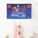 Bannière en vinyle de Noël 10' x 3' - Le Père Noël fait du traîneau à traîneau à la Père Noël Classic et traîne à travers le ciel étoilé.