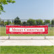 Cette bannière de Noël est montrée en plein air avec un imprimé festif de flocons de neige en hiver.