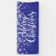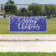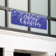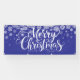 Cette bannière de vacances est présentée dans le style extérieur. Choisissez à l'intérieur ou à l'extérieur, avec ou sans grommets. Montré en bleu avec des flocons de neige et le texte blanc "Joyeux Noël". Choisissez parmi plusieurs tailles. Customisez ou achetez comme prévu. Impression sous licence