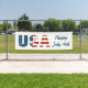Cette bannière patriotique USA est présentée dans le style extérieur, Select de intérieur ou extérieur, avec ou sans grommets. Montré dans un imprimé patriotique USA Flag. Customisez ou achetez comme prévu. Image stock