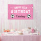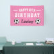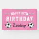 Bannière faite sur commande de partie de joyeux anniversaire de thème du football. Conception de ballon de football avec la typographie d'amusement et la couleur rose faite sur commande d'arrière - plan.