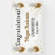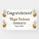 Bannière de félicitations pour Hanging Graduation conçue avec du texte de couleur or sur un arrière - plan blanc avec des ballons d'or et blanc et des étincelles. Pour personnaliser, il vous suffit de remplacer le nom de l'exemple par vos détails.