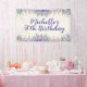 Célébrez 50 années fabuleuses avec cette élégante bannière d'anniversaire florale avec des fleurs aquarelles lilas et violettes. Un fond féminin et intemporel parfait pour les tables de dessert, les zones de photos et la décoration d'anniversaire de milestone.