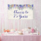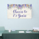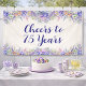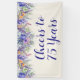 Célébrez 75 merveilleuses années avec cette élégante bannière d'anniversaire florale présentant des florales aquarelles douces lavande et violettes et un gracieux message « À 75 ans ». Un fond intemporel et féminin parfait pour les tables de dessert, les zones de photos et la décoration d'anniversaire de milestone.