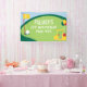 Bannière d'anniversaire golf par-tee pour votre décor de fête. Personnalisez pour votre fête sur le thème golf pour tout âge. Ce grand panneau de décoration de fête comprend un parcours de golf, voiturette de golf, ballons rouges, verts et jaunes.