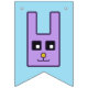 Une bannière avec les lapins et les oeufs carrés autour des mots "Joyeuses Pâques".